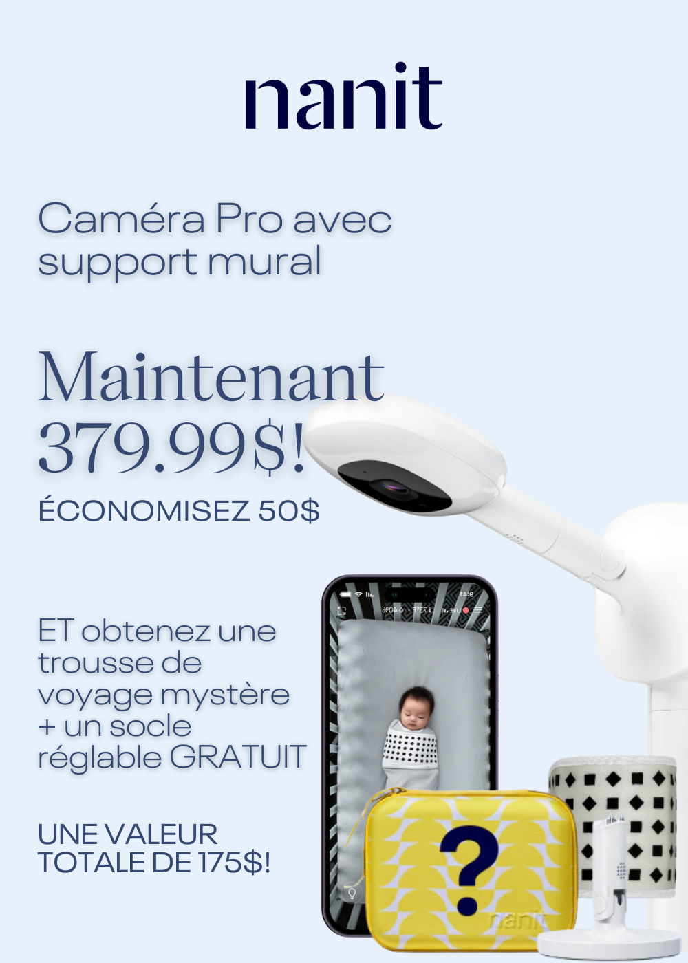 Rangez vos appareils Nanit en toute sécurité ! De la protection de votre moniteur à la simplification de la vie, vous avez Nanit à vos côtés – partout où vos aventures vous emmènent